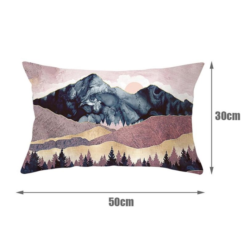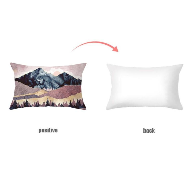 Housse de coussin "Montagne d'automne" motif imprimé au format rectangulaire. Ce type de coussin est utilisé pour les coins de fauteuils et les angles de canapés en guise de repose bras. La housse, quand à elle, ne fera qu'apporter de la résonance à votre environnement.